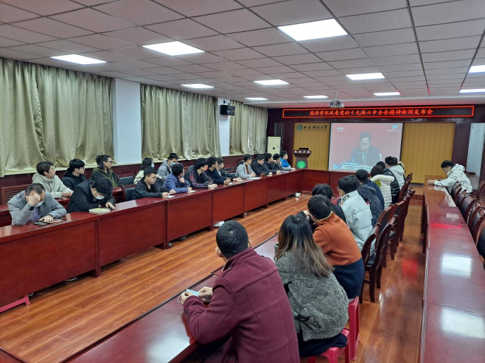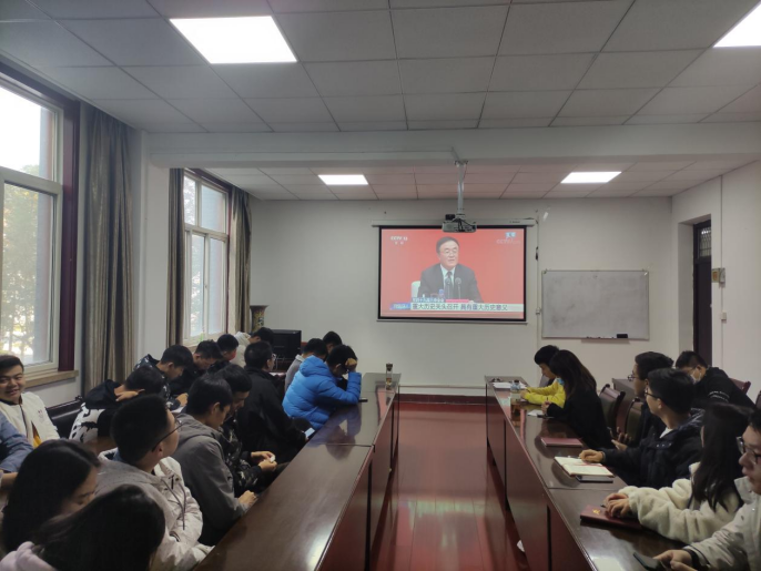 本科生党员和部分教师在骊山校园公司会议室收看新闻发布会