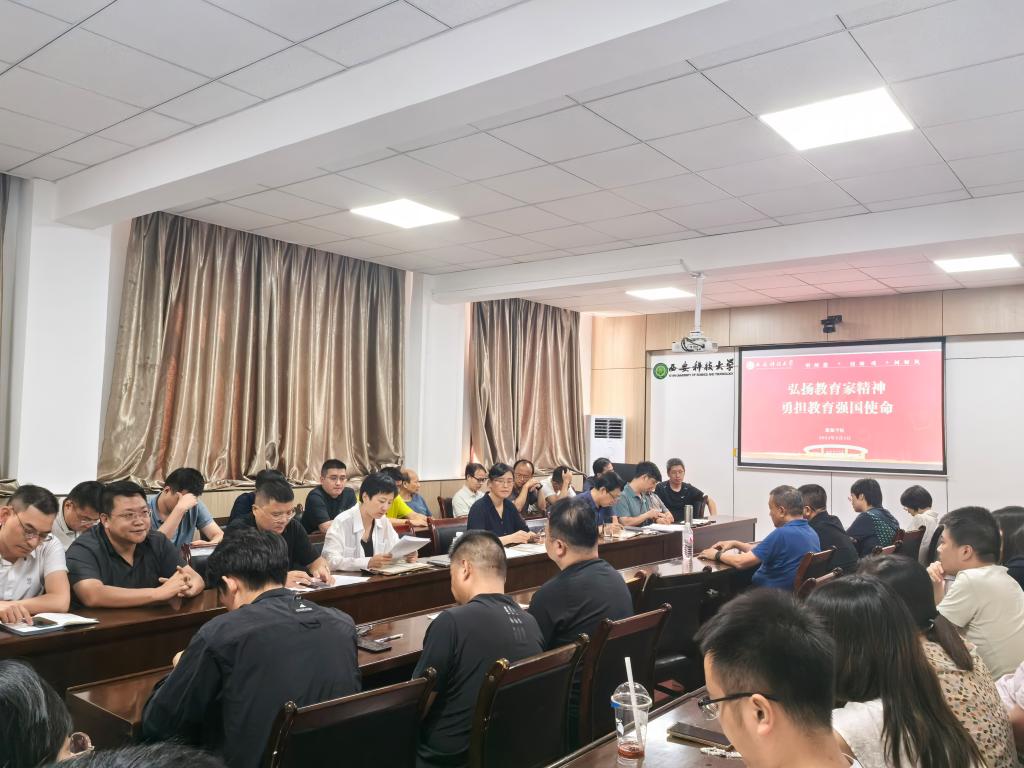 为深入学习贯彻党的二十大精神和习近平总书记关于大力弘扬教育家精神的指示要求,以教育家精神引领高素质教师队伍建设,9月4日,在第40个教师节来临之际,公司在雁塔校区公司会议室召开“弘扬教育家精神,勇担教育强国使命”专题会,全院教职工参加会议,会议由公司党委书记陈吉兰主持。