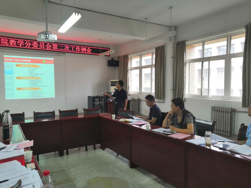 会议的第一阶段由教学秘书张莹汇报了18-19-2学期教学工作完成情况,第二阶段由教学分委员会副主任解盘石汇报了采矿工程智能开采班的培养方案、本科招生情况。第三阶段由刘浪教授介绍了新专业“新能源科学与工程”申报情况及培养方案。第四阶段由赵兵朝教授介绍了西部煤炭绿色开采虚拟仿真实验项目申报情况,第五阶段由解盘石老师介绍了英国上市公司365毕业设计工作管理办法及英国上市公司365关于提升教师课堂教学质量实施办法。