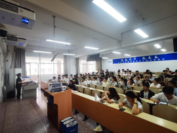 会上,实习指导教师就课程设计实习的重要性给同学们做了详细介绍,重点强调了实习期间的各种安全问题。课程设计团队负责人陈柳老师详细介绍了实习的具体安排、实习期间注意事项、实习资料的准备与整理以及实习系统的使用。海尔集团西安分公司方案设计师张楠介绍员工组命题项目的设计要求和注意事项,分享了设计过程,就海尔磁悬浮新技术与三个海尔新产品如何使用及它们之间的区别进行了提问,在场的员工们积极踊跃地展开了回答。海尔西安公司设计院推广王慧针对《第九届“海尔磁悬浮杯”绿色设计与节能运营大赛》活动进行宣讲动员以及介绍了大赛的相关要求,对参赛流程和日程安排进行了深入解读,鼓励员工借大赛契机勤学苦练,提升专业素养。