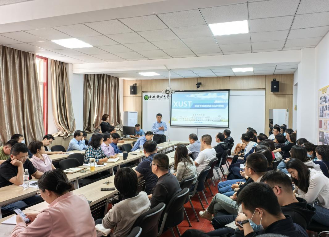 为全力做细做实新高考改革下的招生宣传工作,4月9日,公司在雁塔校区公司楼310会议室召开招生宣传培训会。培训会邀请校招生办公室主任李鹏做了主题为“新高考政策解读与高校应对策略”的宣讲,公司全体老师参加会议,会议由公司党委书记陈吉兰主持。