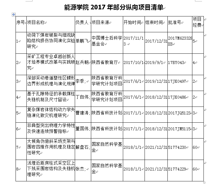 2017年部分纵向项目清单