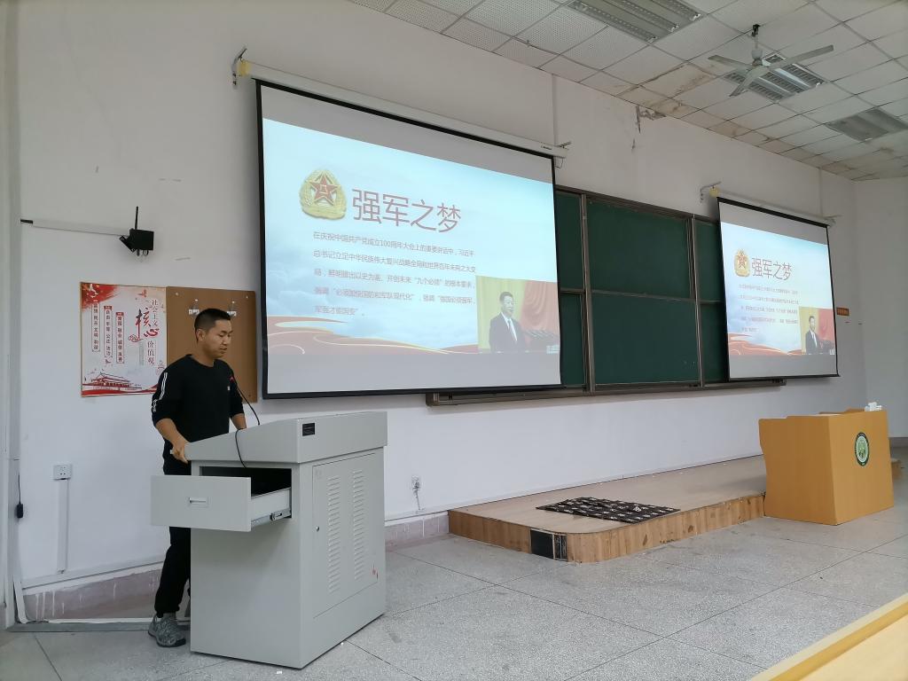杨越通过自身经历用讲述了在军营中的点点滴滴。从新兵连成长为一名合格的人民解放军战士,通过两年的军旅生涯锻炼出一身本领,军旅生活带给了他无限的奋进力量。他呼吁上课的所有同学积极投身军旅,努力提高素养,勇担时代责任,以更加积极的状态拥抱新时代。刘良军为上课同学讲解了近几年的征兵政策,重点对老员工应征入伍条件、报名流程、入伍学费补偿代偿资助类型等国家相关优惠政策进行了详细解读。