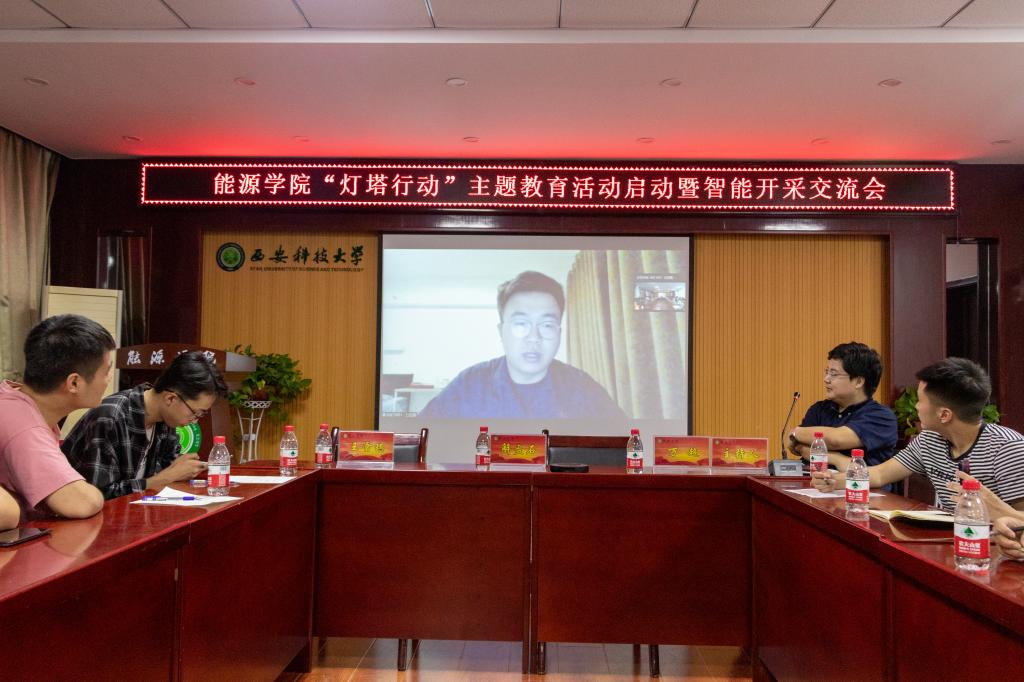 会后举行了“灯塔行动”主题教育的首场交流会。2016届毕业生、陕西榆北煤业公司李攀,2017届毕业生、陕煤彬长矿业公司李晖,2018届毕业生、榆北煤业公司王俊伟,2019届毕业生、陕西麟北煤业公司吴永松,2020届毕业生、陕西延长石油巴拉素煤业公司王田源等5名毕业生代表就煤炭行业现状、智能开采实践、个人发展以及福利待遇等方面做了线上交流分享。2019年赴陕北、神东矿区调研暨红色研学实践团成员线下分享了在神东集团大柳塔煤矿、补连塔煤矿,陕煤集团小保当煤矿、柠条塔煤矿,延长石油集团魏墙煤矿等现代化矿井的实践见悟。交流会氛围热烈、反响强烈,切实增强了采矿工程专业员工的专业认同和行业认同。