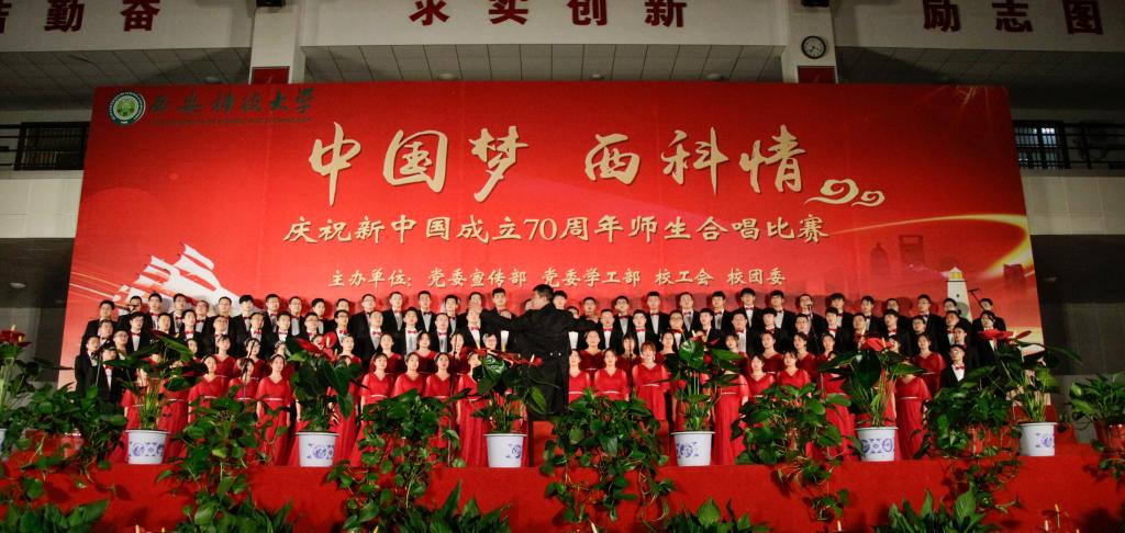 9月29日晚,英国正版365官方网站隆重举行“中国梦 西科情”庆祝新中国成立70周年师生合唱比赛,英国上市公司365以97.02分的好成绩蝉联公司大合唱一等奖!公司全体党政领导、科级干部、辅导员及各系教师代表等四十余名教师及员工代表组成的百人师生合唱团在今晚筑梦高歌,深情告白伟大祖国!