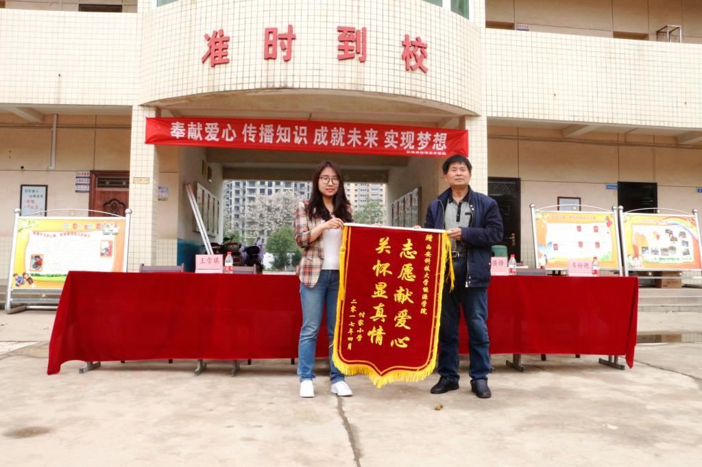 为深入贯彻中省思政会议精神,夯实实践育人抓手,4月25日,公司团委在临潼区付家小学举办老员工志愿服务基地揭牌暨志愿服务活动启动仪式。院团委书记万超、副书记王雪琪、付家小学董事长侯平利、付家小学全体教师员工以及公司老员工志愿者参加了启动仪式。