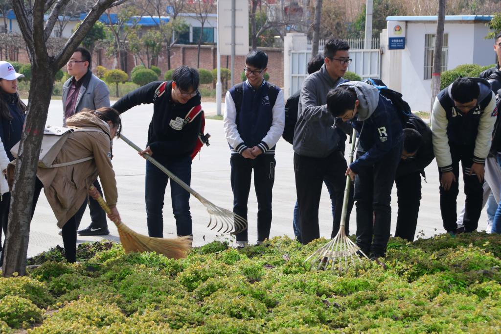 3月1日中午,为进一步美化校园环境,营造良好的生活学习环境,公司组织14、15、16级员工开展美化校园活动。学公司党委副书记高朕栋,团委书记万超及全体辅导员参加了活动。