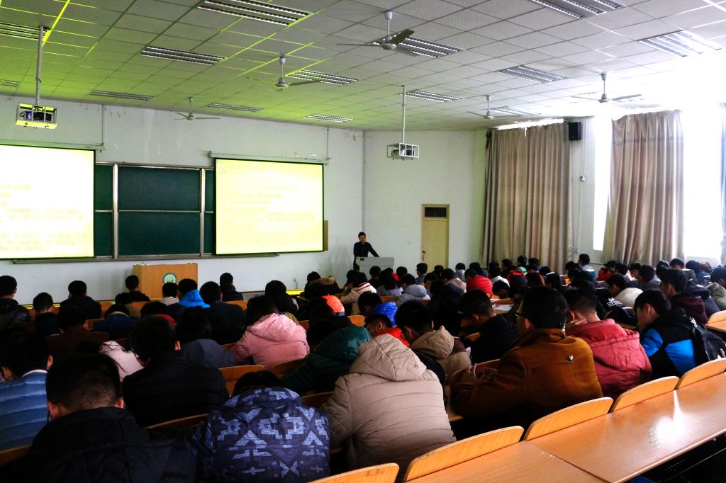 高书记从“思想政治涵义”、“当今社会主题”、“目前高教育形势”、“公司基本情况”、“就业创业工作”、“职业生涯规划”、“心理健康指导”和“发展党员工作”等八个方面给2016级全体员工开展了一次全面的思想政治教育工作。