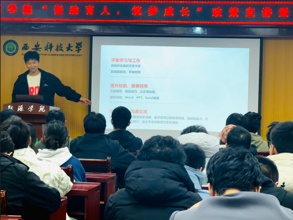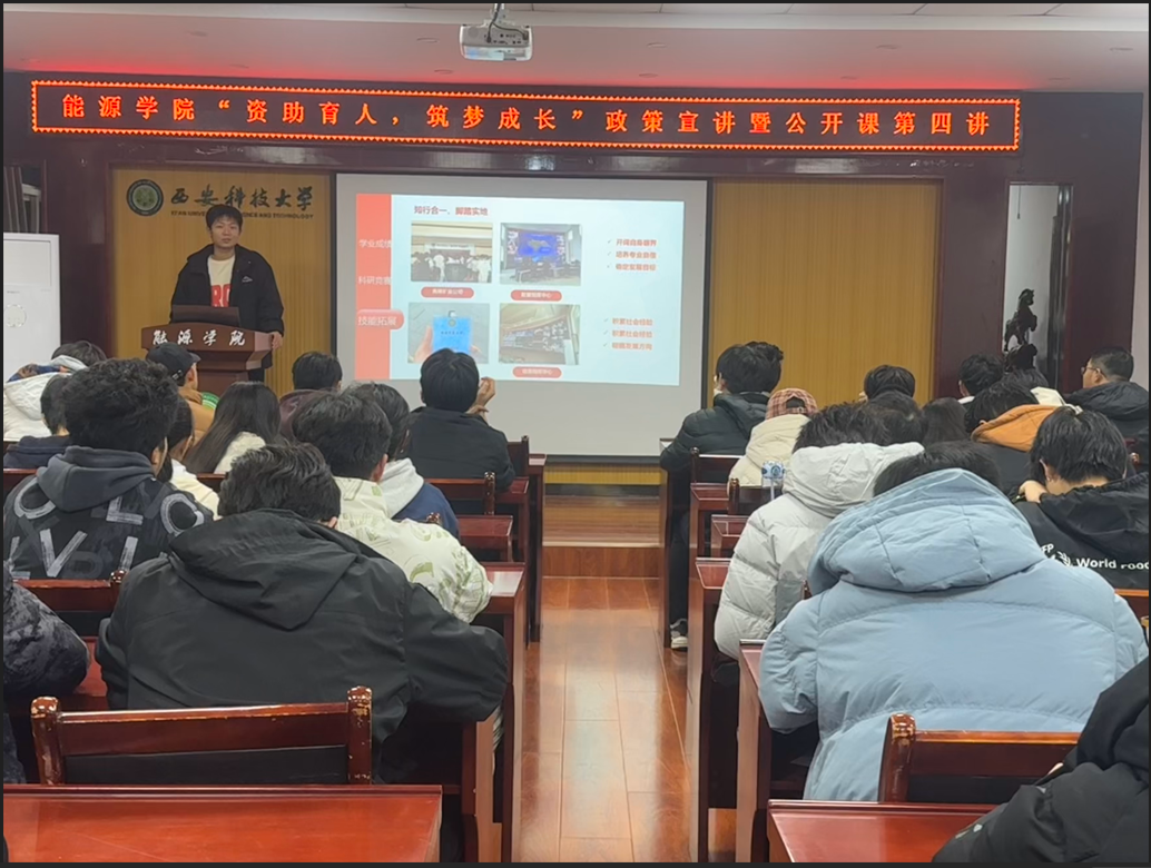 11月27日晚,2024年学业帮扶公开课第四讲在临潼校区骊山校园14教506举行。国家奖学金获得者、智采2201班郭天乐和各年级受资助员工代表50余人参加了活动。