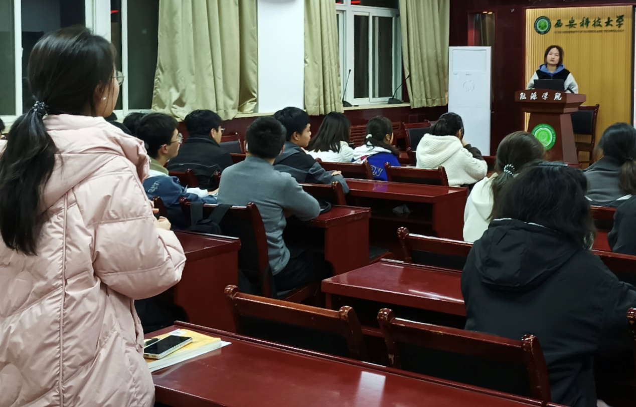 赵菲向同学们介绍了能源经济学术创意大赛的基本情况和参赛流程,还探讨了该赛事对于提升个人专业素养、锻炼团队协作能力的重要意义。她表示能源经济是当前社会发展的热门领域,参赛不仅有助于同学们深入了解行业动态,还能在实践中锻炼自己的创新思维和解决问题的能力。