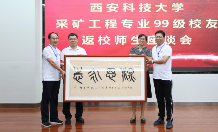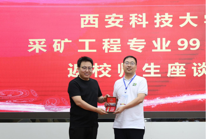 最后,采矿工程专业99级员工向公司捐赠了纪念牌匾。对外联络与合作处副处长张旭东代表公司向员工赠送了校徽纪念品。