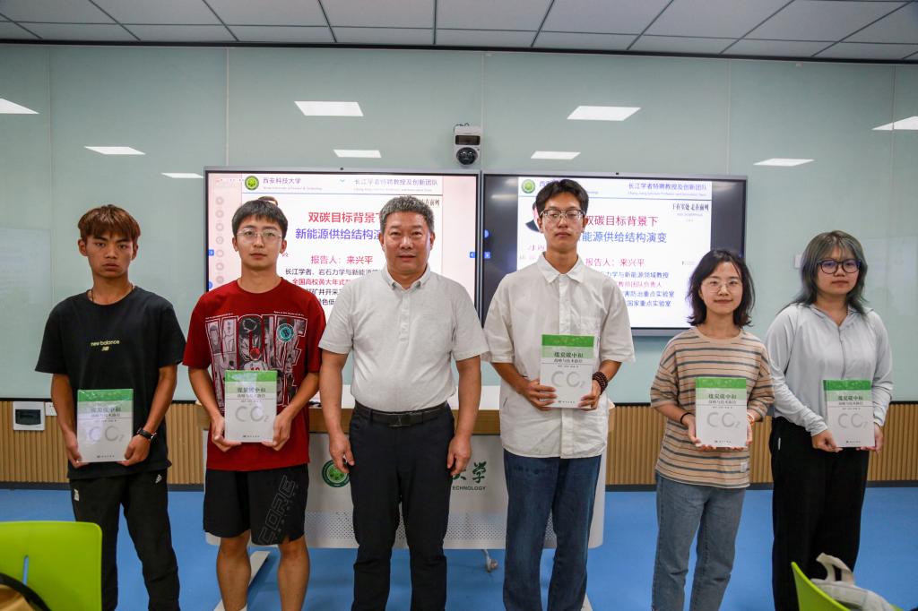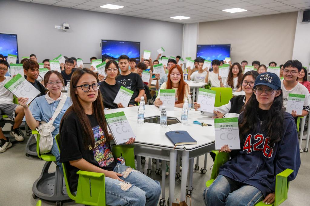 整场报告理念先进、数据详实、语言幽默,既有丰富的科学内涵,又有严谨的内在逻辑,极具科普性和感染力。报告开始前,来兴平向新能源科学与工程专业每位本科生赠送了谢和平院士专著《煤炭碳中和战略与技术路径》,以及其主编的《碳达峰碳中和技术概论》教材。
