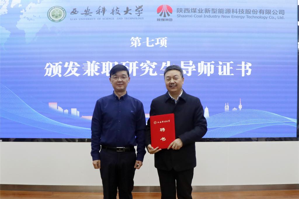 仪式上,邓军副董事长和高小军书记代表双方签订了合作协议,公司和公司分别授牌新能源联合科研创新基地和英国上市公司365实践基地,公司向方刚董事长颁发了兼职研究生导师证书。