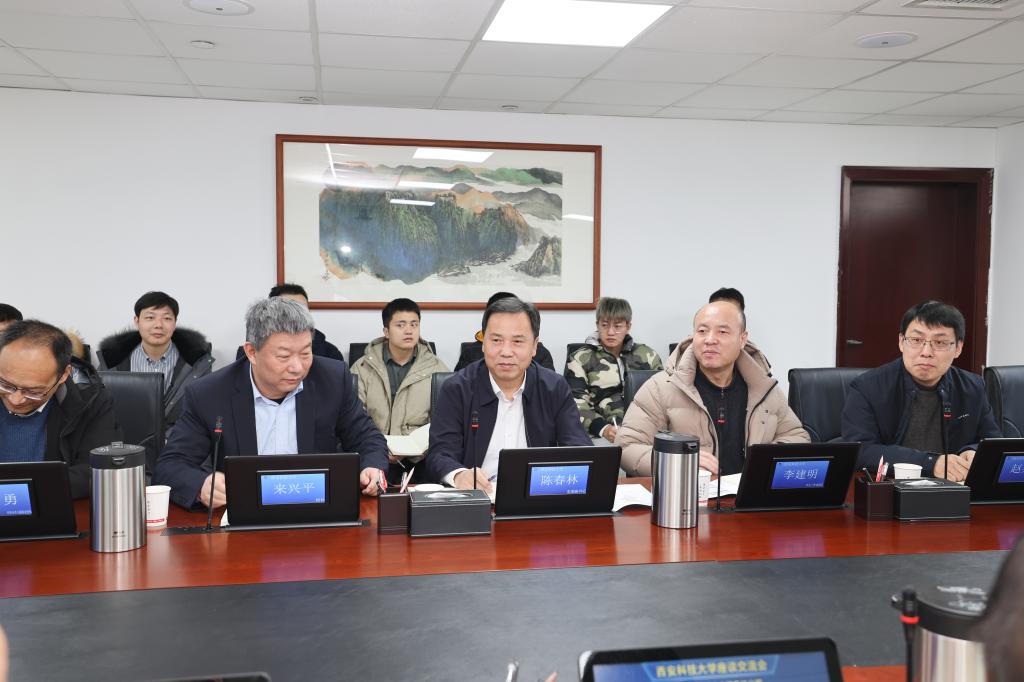 在与陕西延长石油矿业有限责任公司座谈交流时,来兴平教授向延长矿业公司长期以来对公司建设发展的大力支持表示感谢,详细介绍了“十四五”期间公司在团队建设、人才培养、科技创新、成果转化等方面情况,表示校企双方要进一步加强科研成果转化和产学研一体化合作,聚焦矿业公司高质量发展的卡脖子难点,在智能化快速掘进、超长工作面矿压防治、超高强度开采粉尘治理、富水煤层防治解危等领域持续开展点对点联合攻关,提升高校与企业协同创新效率,把公司技术成果转化为现实生产力,为陕西省高质量发展贡献力量。陈春林介绍了公司的办学历史和发展基本情况,对公司第十一次党代会主要精神和“十四五”发展规划做了解读和说明,希望校企双方保持沟通联系,进一步加强人才培养和科研方面的合作,取得更加突出的成果。