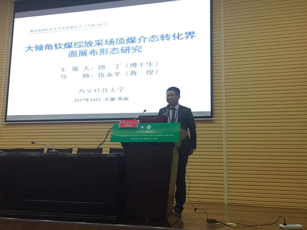 黄庆享、来兴平、贠东风教授、王红伟、郎丁博士分别做了《浅埋近距离煤层群分类及其支护阻力确定》、《急倾斜煤层安全高效开采理论与技术》、《高动压区段煤柱中巷变形破坏机理与修复技术》、《大倾角特厚煤层走向长壁变角度工作面综放开采技术》、《大倾角软煤综放采场顶煤介态转换界面展布形态研究》的学术报告,受到与会代表的广泛关注。