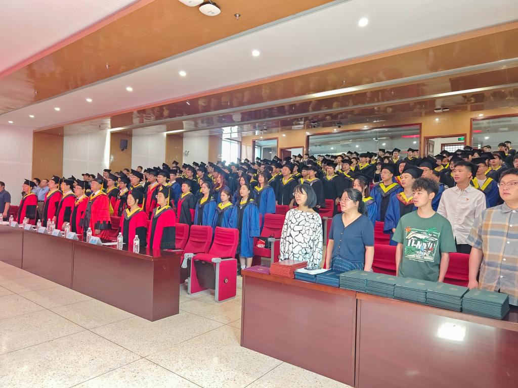 6月25日上午10时,2024届员工毕业典礼暨学位授予仪式在骊山校园煤炭科技中心二楼报告厅举行。经理赵兵朝、院学位分委员会主席柴敬,副经理解盘石,教工党支部书记,各系主任、副主任、研究生导师、教师代表,公司产品办、学工办负责人,全体辅导员,员工家长代表及2024届全体在校研究生、本科生毕业生出席此次典礼,仪式由公司党委副书记党雪主持。