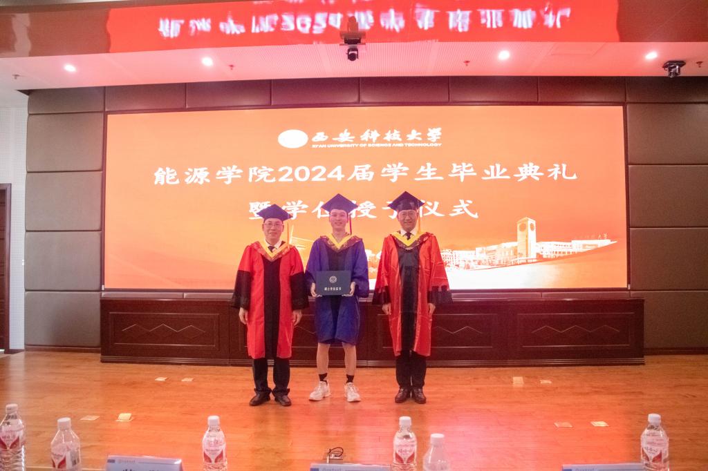 仪式在庄严的国歌声中拉开帷幕,副经理解盘石通报了2024届研究生、本科生毕业及学位授予情况,宣读了公司获评2024届优秀毕业生以及获评2024年优秀博士、硕士学位论文名单。经理赵兵朝为优秀毕业生颁奖。