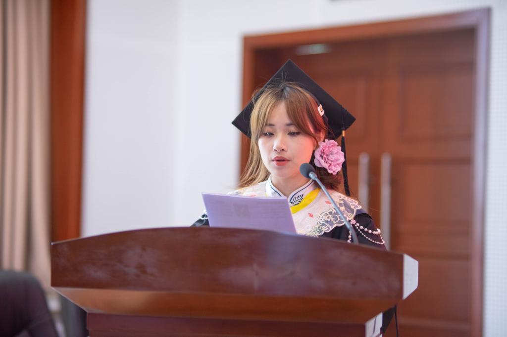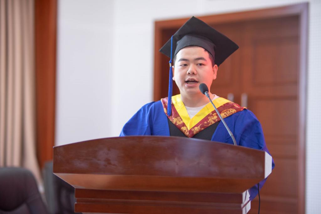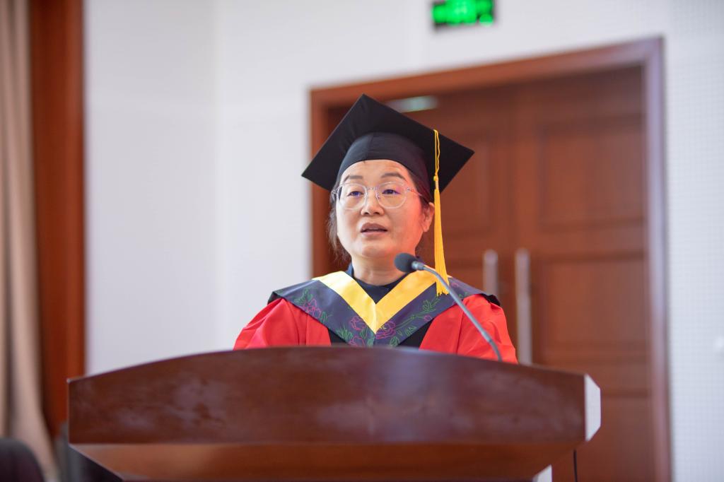 2024届研究生毕业生代表刘永孜、本科生毕业生代表李宜林、在校生代表孙嘉豪先后发言。教师代表张小艳勉励同学们坚持终身学习,不断超越自我;保持积极上进、乐观豁达的人生态度;坚守梦想,勇敢前行。祝愿同学们满载着对未来的畅想和憧憬,在新的岁月里直挂云帆,乘风破浪,梦想成真。
