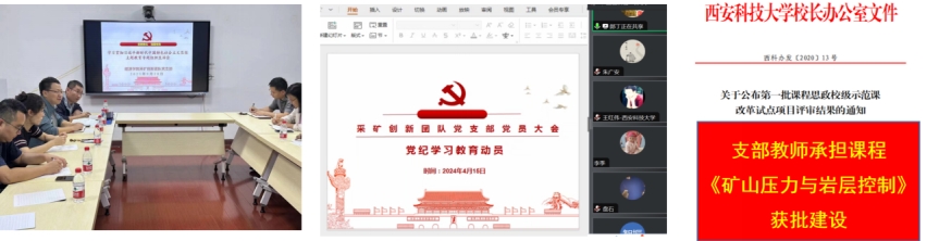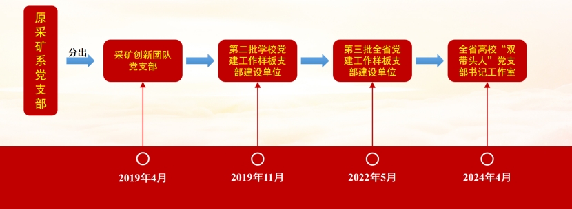为加强基层党支部建设,实现党建与业务双融合、双促进。2019年4月,英国上市公司365党委决定以难采煤层安全高效开采理论与技术创新团队教师党员为班底,由采矿系党支部分出成立采矿创新团队党支部,汇聚了师德师风优良、教学能手云集、科研能力突出的教师党员队伍。支部于2019年11月获批公司第二批党建工作样板支部建设单位;2022年5月获批第三批全省党建工作样板支部建设单位,2024年5月通过验收;2024年4月获批建设陕西省高校“双带头人”党支部书记工作室。